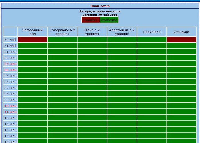 АдминПанели можно задать категории и число объектов в каждой из них (для гостиницы - число номеров каждого типа), а также